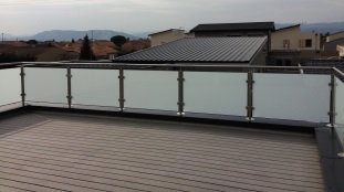 en verre claire feuilleté 44/2 en partie basse. Ce type de barrière